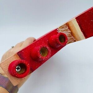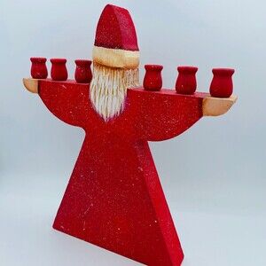 Very nice wooden candle holder om outstretched arms of Santa himself. Hand crafted and in great preowned condition. See all images and closeups for more information and details. Bin u