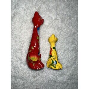 Folk Art Hand Painted Long Neck Cat Figurines 4” & 2.5” VTG MCM Anthropomorphic