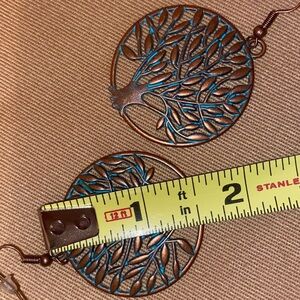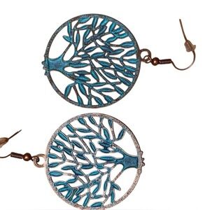 You will love these gorgeous boho vintage inspired copper and turquoise colored tree of life drop earrings are lightweight yet not “dainty”. These are only are available in pierced and are hung on metal fish hook style earwires. Stoppers are included for a secure fit.