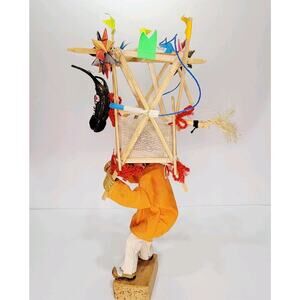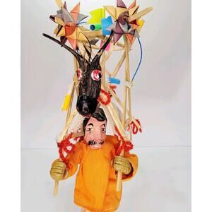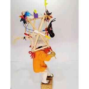 Folk Art Mixed Media Mexican Torito Firework Dancer Origami Wood Paper 14"