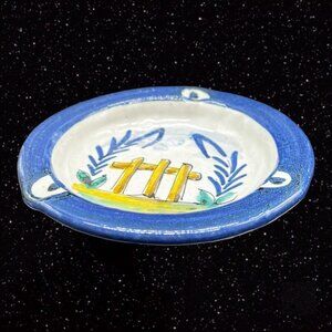 Folk Art Pottery Tauer Rocio Trina Ashtray Hand Painted Wood Fence Signed 5”W.