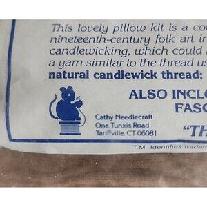 This is a hand embroidery kit by Cathy Needlecraft featuring a folk art reproduction design from Colonial Williamsburg. The themes of the kit are flowers and plants, and the format is a candlewicking kit. The kit includes all the necessary materials to complete the design.