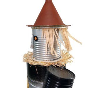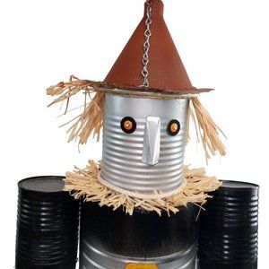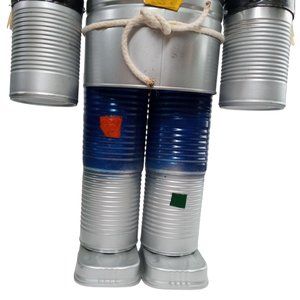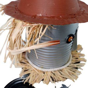 Folk Art Tin Man Scarecrow Sculpture Wizard Of Oz Recycled Robot Vintage 26 Inch