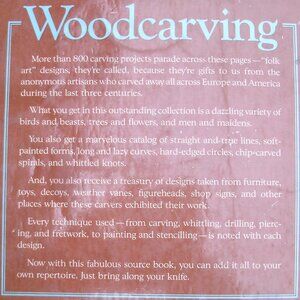 Title: Folk Art Woodcarving: 823 Detailed Patterns. Authors: Alan & Gill Bridgewater. Publisher: Sterling Publishing Co., 1990. Paperback. Ex-library with clear library cover. Has library marks, stamps, stickers etc. Good condition: no torn pages, no writing other than library writing. Cover good with some wear from use/shelf. Contains black & white illustrations. Great for anyone interested in this art form.