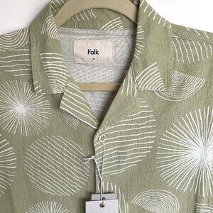 Folk Clothing Jay Shirt Men’s Khaki Cotton Geometric Short Sleeve Button Front R