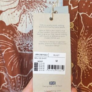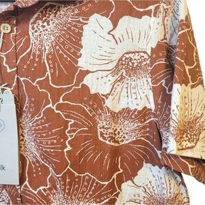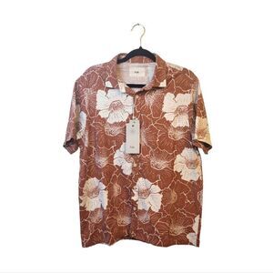 Folk Rust Floral Pattern Maui Short Sleeve Button Down Shirt