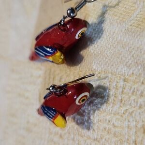 Folk art tropical parrot earrings red blue yellow