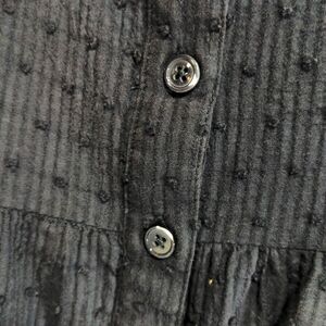 Features: delicate swiss dot pattern and square neck line, long sleeve dress with 2 patch pockets on front; button up closure; gives a cottage core look