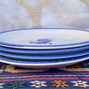 Set of 4 Folkcraft Stoneware ‘Morning Farm’ dinner plates. EUC