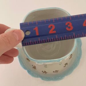 This sweet OWL holding strawberries tea cup with saucer is hand painted by Rhode Island Artist Jean Cotton.
