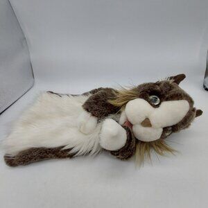 Folkmanis Cat Stage Puppet Retired Green Eyes Plush Fluffy White Brown 15"
