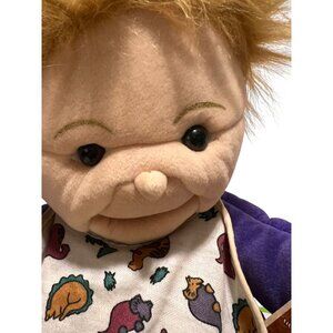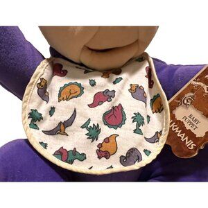 This Folktails baby puppet from Folkmanis features a whimsical dinosaur print, making it a delightful addition to any puppet collection. Crafted with attention to detail, it offers a playful and engaging experience for storytelling. The puppet's vibrant colors and unique design make it a standout piece for both play and display. Measures 15" in the sitting position.