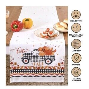 Folkulture Table Runner 108 Inches Long for Dining Table Decor, 100% Cotton Farmhouse Style Table Runner, Boho Runner for Fall Décorations, Coffee Table Runner, Pumpkin Truck
