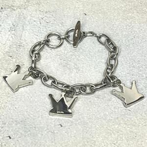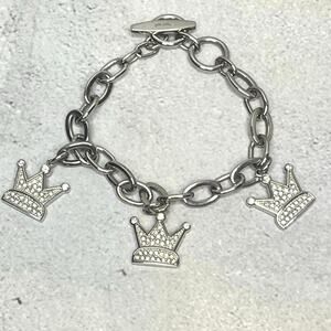 Folli Follie Silver-Tone Rhinestone Crown Charm Bracelet- Stamped