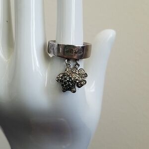 .925 Sterling Silver Folli Follie Dangle Turtle and Flower Ring. Ring size is 7.5 .