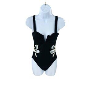 Follow Suit NEW Flora One-Piece Cut Out Swimsuit in Black and White Size XL