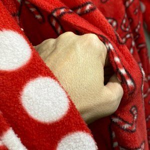 • pajamas, candy canes, dots, polka dots, Santa hat, fleece