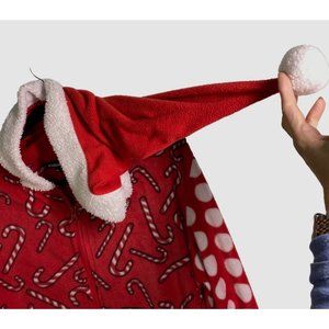 #Follow me Christmas one piece zip up pajamas santa hood candy canes women's XXL