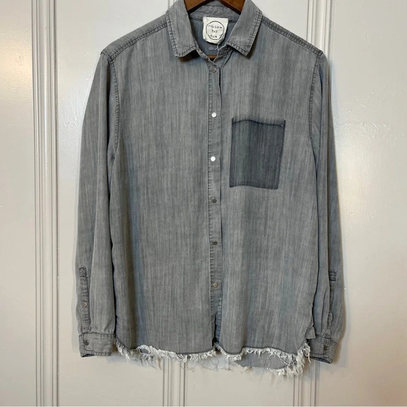 Pre owned condition. Super soft Tencel fabric, distressed hem. Snap front and snap cuffs on the sleeves.