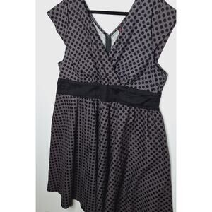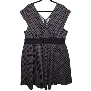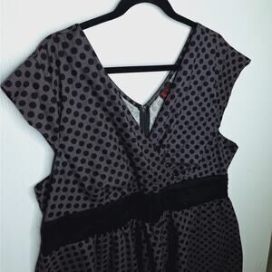 Folter Swing Dress 50s Circle 2X Pinup Retro Polka Dot Bombshell Fit Flare Gray Black Cotton