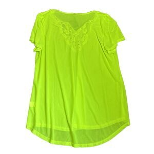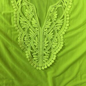 Folunsi Neon Green Cover Up/ Tunic Top Plus Size 4X -5X Embroidered V Neck NWT