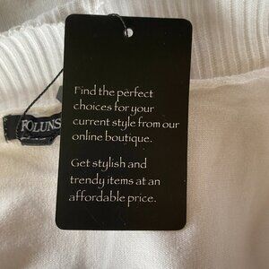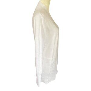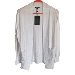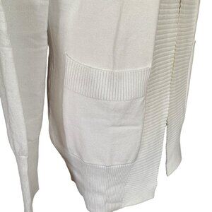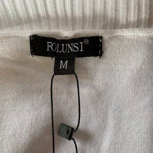Women's Folunsi white cardigan, size medium. This is a long sleeve open cardigan/sweater with two open front pockets, as well a stretchy material, and ribbed edges. NWT! Smoke free pet free home! Quick shipper!