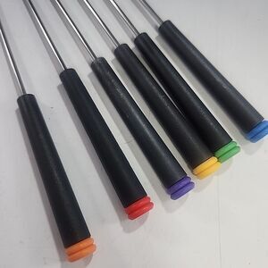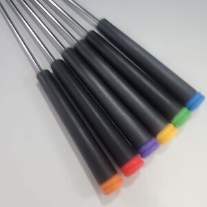 Fondue 9.5" Long Metal Fork Set Plastic Handle w Color Insert MCM Set 6