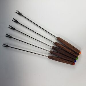 Fondue Long Fork Set Wood Teak Handle Color Insert MCM Set 5 Haddon House Japan