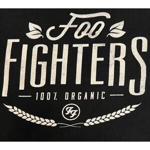 Foo Fighters graphic tee with “100% Organic” text and wheat/leaf design.