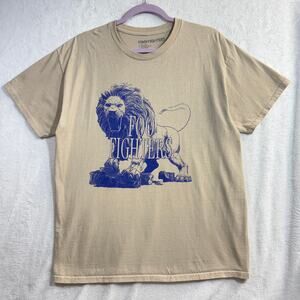 Foo Fighters L Beige Blue Lion Graphic Band Tour T Shirt 2023 Concert Rock Merch