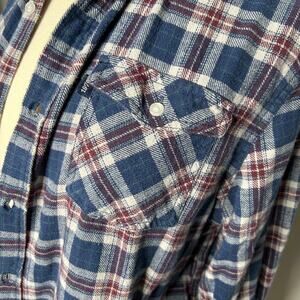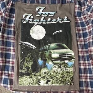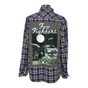 Frayed Calabasas Malibu Foo Fighters Upcycled Plaid Shirt Large NWT