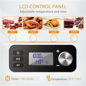 🧿ADJUSTABLE TIMER & TEMPERATURE - Features adjustable timer and temperature functions; Drying temperature can be set from 95℉-176℉(35℃-80℃), while the time can be set from 1-48 hours; Choose the optimal time and temperature according to the ingredients; A hot air fan will automatically switch on and off to balance the temperature; Never have to worry about making a mess again