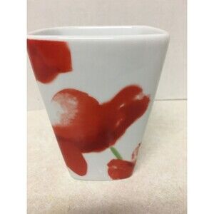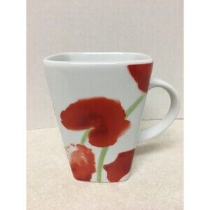 Food Network Porcelain Set Of 2 Poppy Flowers Square Mugs 12oz