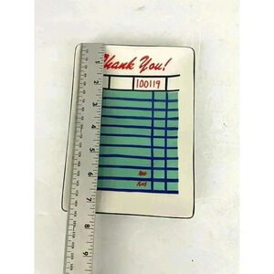 Food Order Receipt Ceramic Tray 7.5"x5.5" THANK YOU Handpainted Server Tab