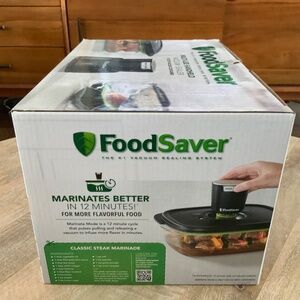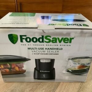 NEVER BEEN USED - Vacuum sealing system. Included in the box, handheld sealer with dock, 1 - 10 cup container, 2 quart zipper bags.