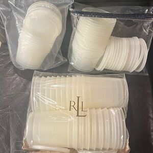 Set of 50 food storage containers. 25 quart size & 25 pint size. Dishwasher safe, microwaveable, freezable, leak proof, stackable for easy storage. Lids are interchangeable.