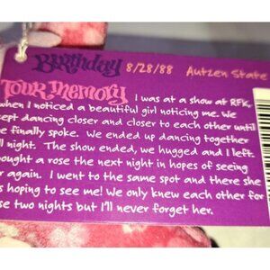 Tag attached, New condition. Bear with cute pink body with different colored hearts throughout. It has a lighter pink neck band. Commemorates a 08/28/88 show at Autzen State.