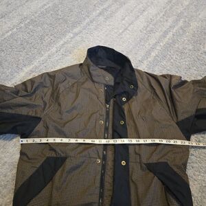 Foot Joy DryJoys Rain Jacket L Brown Houndstooth Windbreaker Golf Pullover. The tip on the zipper pull is missing as shown in the second picture. Please take good look at all of the pictures for the exact condition.
