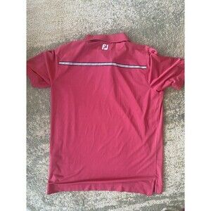Foot Joy FJ Polo Shirt Sz L Deep Pink Design White Stripe Short Sleeve Golf Logo