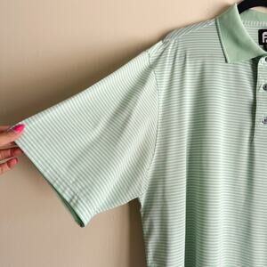 Foot Joy Green + White Striped Short Sleeve Polo - XL
