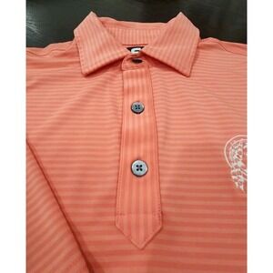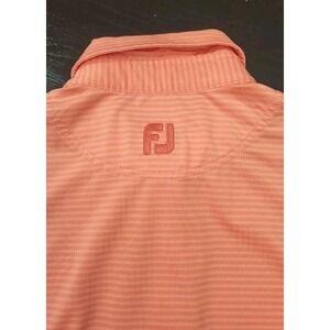 Foot Joy Mens Polo Shirt Sz M Salmon Short Sleeve Striped Embroidered Logo Golf