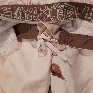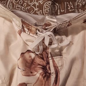 Off white with cream and tan floral/tropical designs
