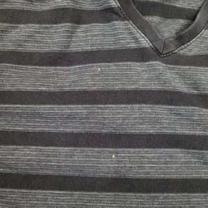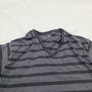 Foot Locker T-Shirt Men's Large Gray Striped Athletic Fit V-Neck