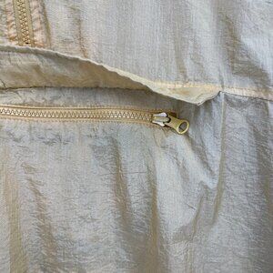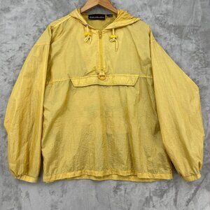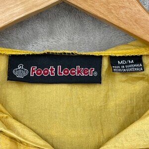 Vintage 90s Footlocker yellow pullover packable hooded windbreaker. Material is ripstop nylon, jacket is unlined. Hood can be rolled & snapped out of the way. 1/4 zip closure. Size M--very oversized. Please see photos for measurements.