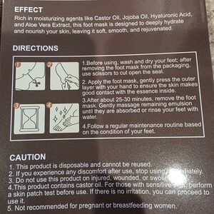 Revitalize your feet with the Dry, Cracked Skin Foot Mask. Infused with castor oil, this cream-colored mask deeply moisturizes and softens calluses. Perfect for achieving smooth, healthy skin.