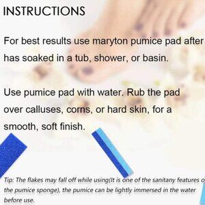 Note: When you first open the package and use the pumice, there may be some loose pumice powder. Use on wet feet only; avoid using on delicate, soft, or inflamed skin. Lightly immerse the pumice pad in water before use.