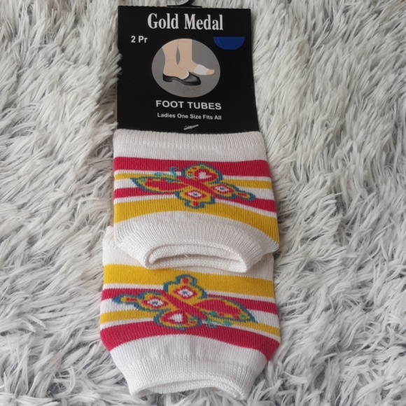 Cute Foot tube socks that can be worn with your slides, sandals, and/or dancers. Great for the Summer. Pack includes two pairs. One size fits all. Excellent new condition.