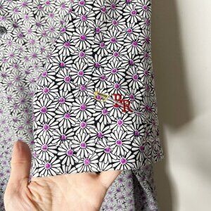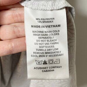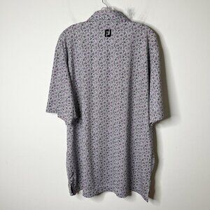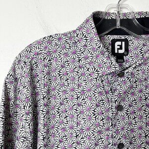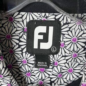 Stylish FootJoy polo with a unique black and white pattern. Comfortable and perfect for casual wear.