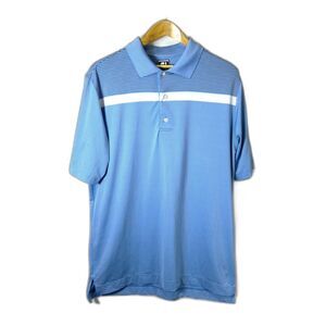 FootJoy Blue White Stripe Athletic Fit Performance SS Golf Polo Shirt Size L
