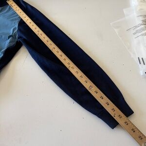 Stylish FootJoy zip-up sweater. Features a blue front with navy sleeves and collar. Perfect for casual wear.